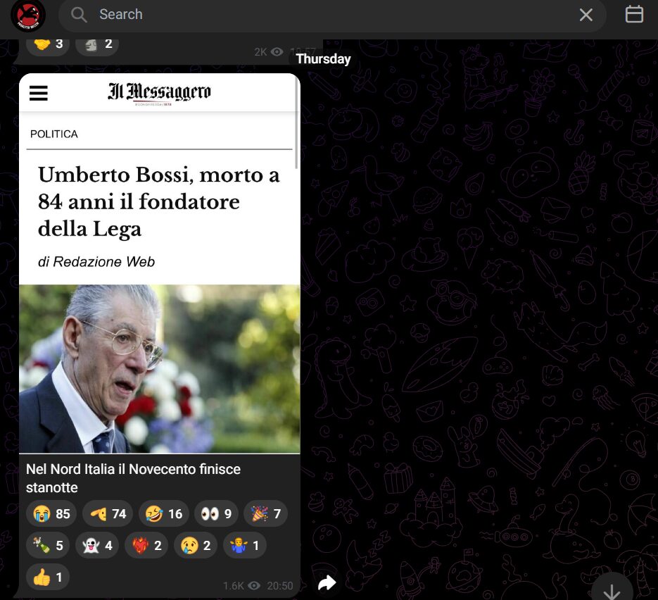 Adesso il Senatùr ci guarda da lassù assieme a Chuck Norris e Khamenei che questo anno infame si è già preso con sé e nessuno sembra pronto a raccoglierne l’eredità.
