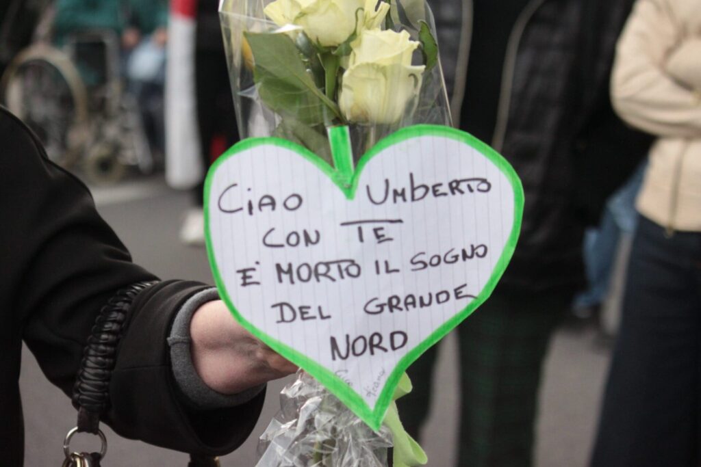 Mario Borghezio – è ancora vivo – arringa una manciata di presenti. Anche lui è uscito dalla Lega e non ha parole carine per Salvini. Pare che l’ultimo desiderio di Bossi, il suo last message, sia stato quello di vedere finalmente di nuovo unito il popolo leghista. Così, almeno, dice Borghezio.